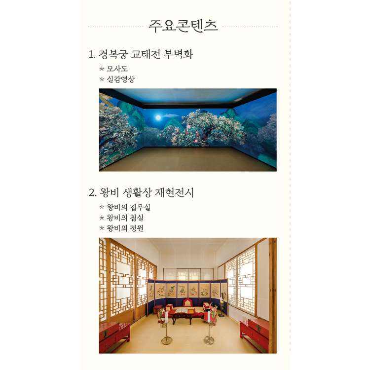 이번 특별 개방에서는 교태전 내부의 대청, 온돌방, 회랑 등을 자유롭게 둘러볼 수 있습니다. 과거 왕비가 생활했던 모습을 생생하게 체험할 수 있도록 다양한 복원 전시물과 유물을 직접 만나볼 수 있습니다.