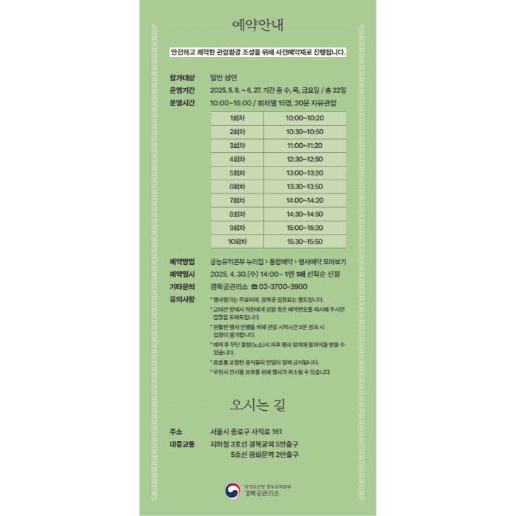 - 관람 당일 신분증 및 예약 확인증 필수 지참